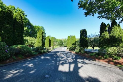 The residential condo has a wood facade, attached garage and full basement on about three quarters of acre lot.