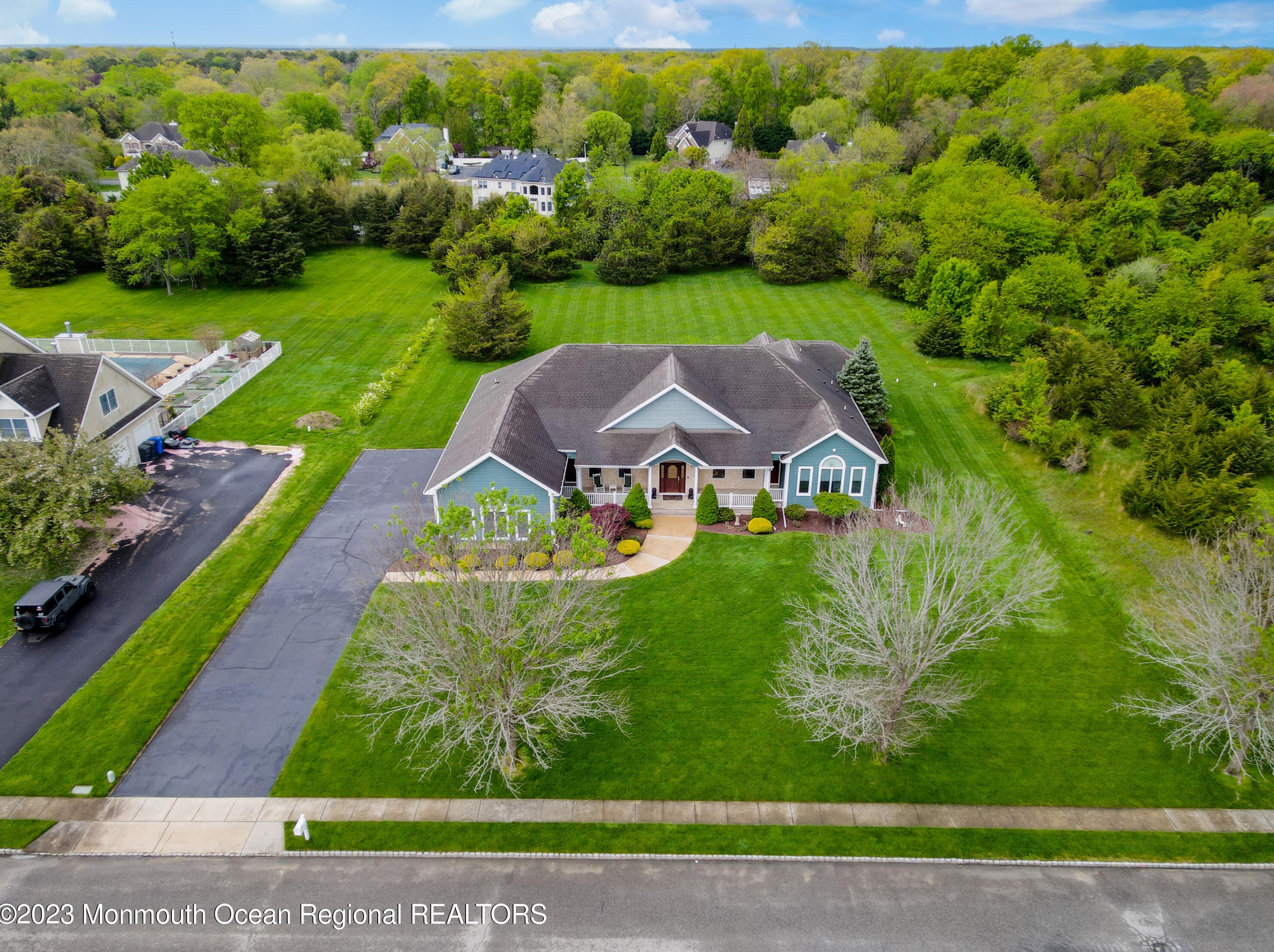 This more than forty-two hundred square feet property with four bedrooms and four bathrooms was built in 2005 on about one and a half acres.