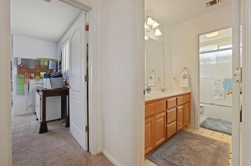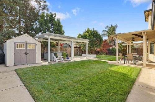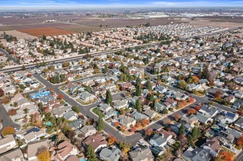 The single-family home is situated at the end of the street at 1908 Gathering Ct, Modesto, CA.