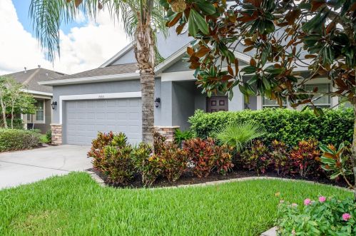 At 19421 Sunset Bay Drive, Land O Lakes, FL stands a large one-story single-family residence.