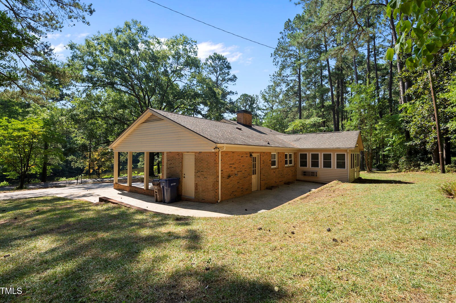The property has a brick facade and carport on about one acre lot.