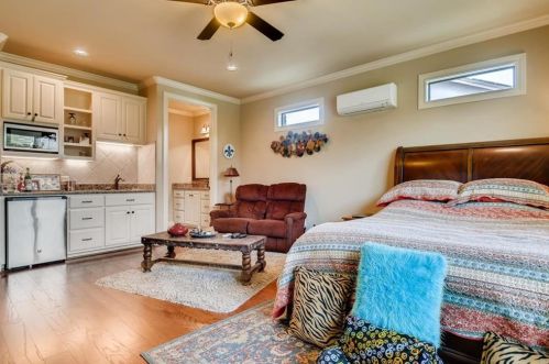 The single-family home stands at the end of the street at 205 Pristine Ln, Georgetown, Texas.
