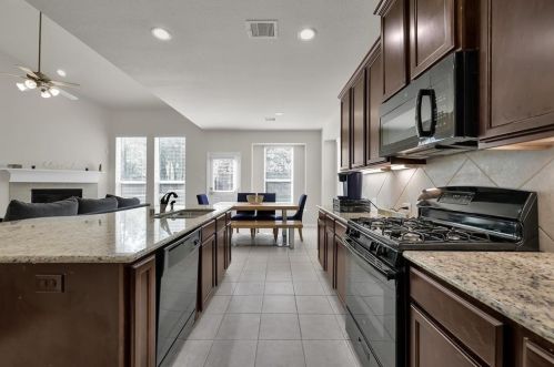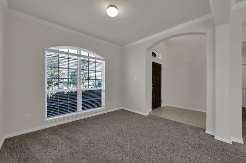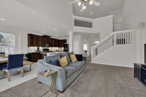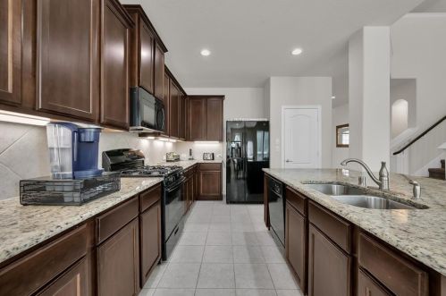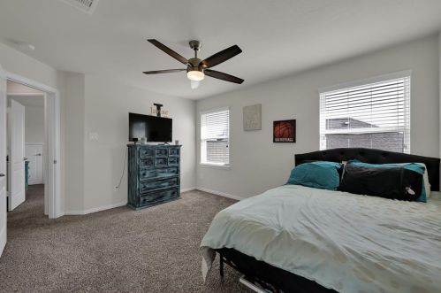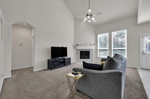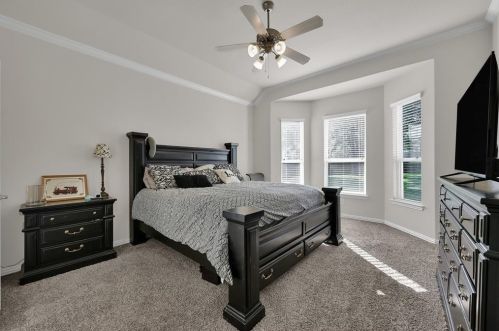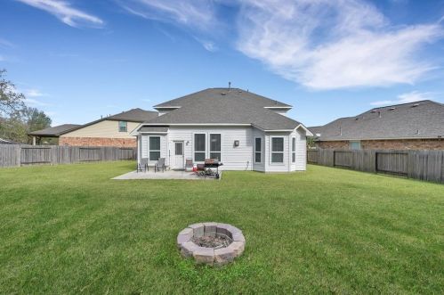 The single-family estate stands at the head of the street at 2204 Ivy Wall Drive, Conroe, TX.