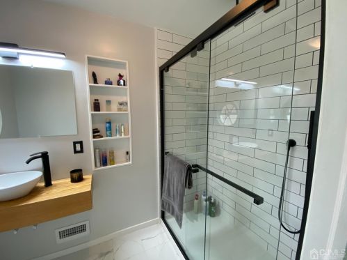 This approximately fifteen hundred square feet property with three bedrooms and two bathrooms was built in the fifties on near a half of acre.