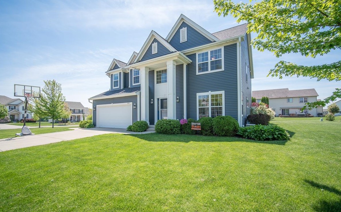 The single-family estate stands at the end of the street at 2423 Kiowa Drive, Grafton, Wisconsin.