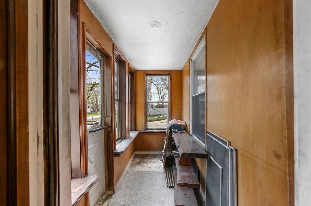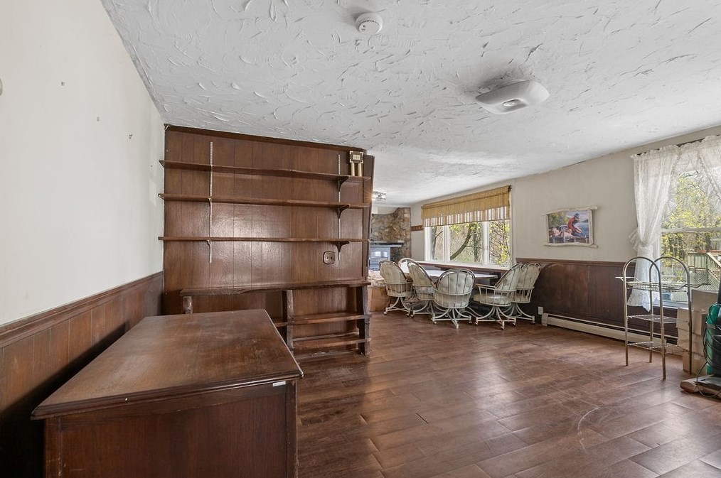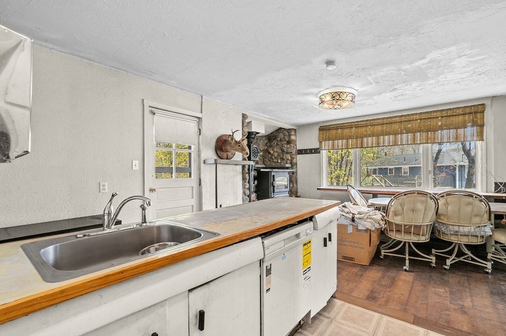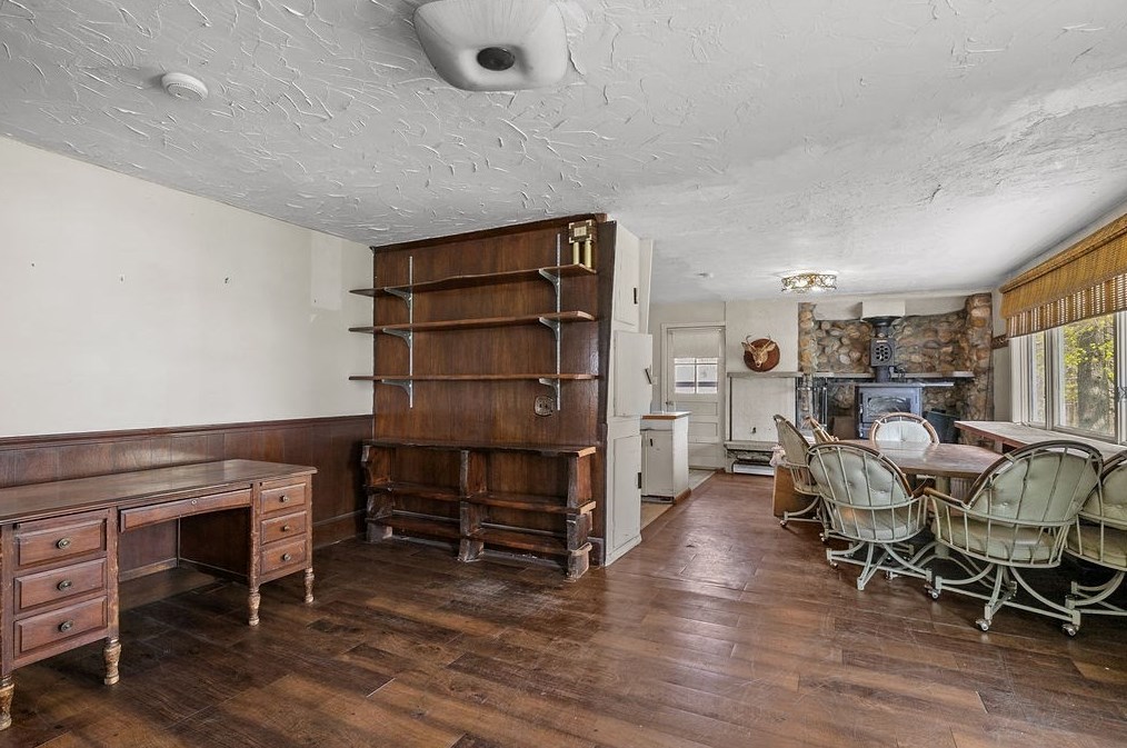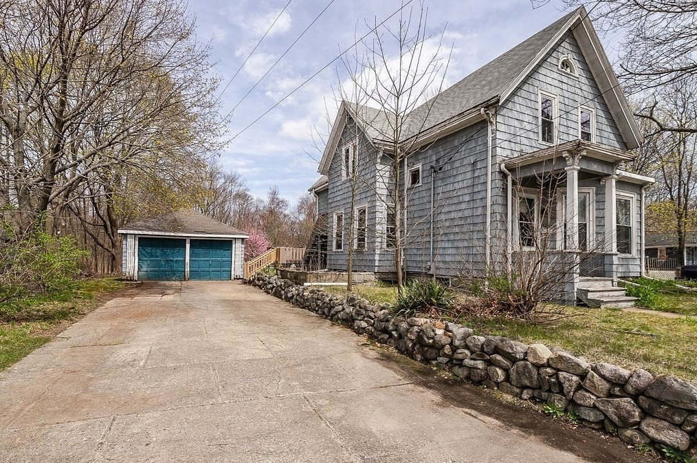 Originally built in 1900, the property has a wood facade and attached garage on approximately one and a quarter acres lot.