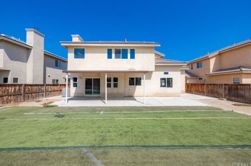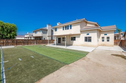 The single-family home is situated at the end of the street at 264 Galiceno Drive, San Jacinto, California.