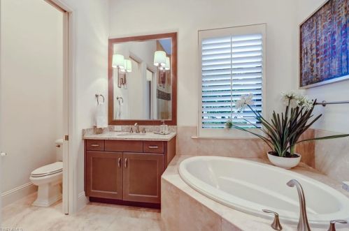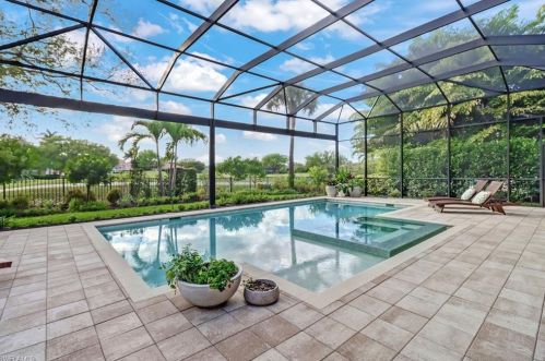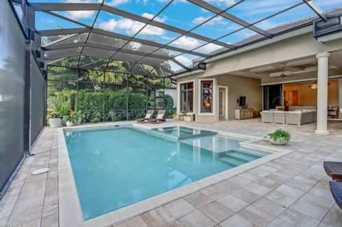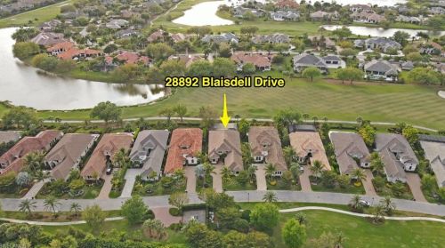 The single-family residence stands at the end of the street at 28892 Blaisdell Drive, Naples, FL.