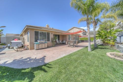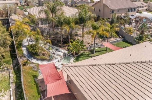 The single-family property is situated at the end of the street at 29184 Stone Ridge Street, Menifee, CA.