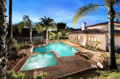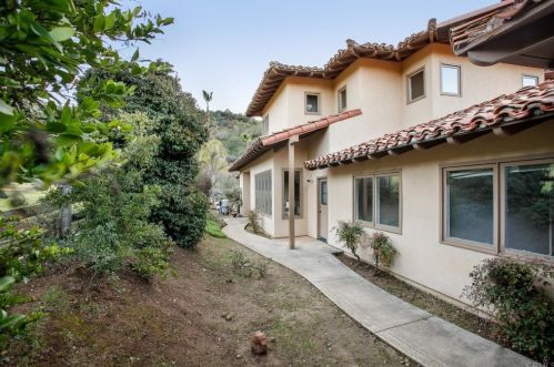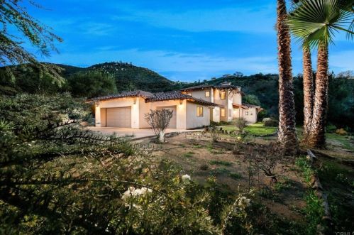 The single-family property stands at the end of the street at 29572 Cedar Trails Road, Valley Center, CA.