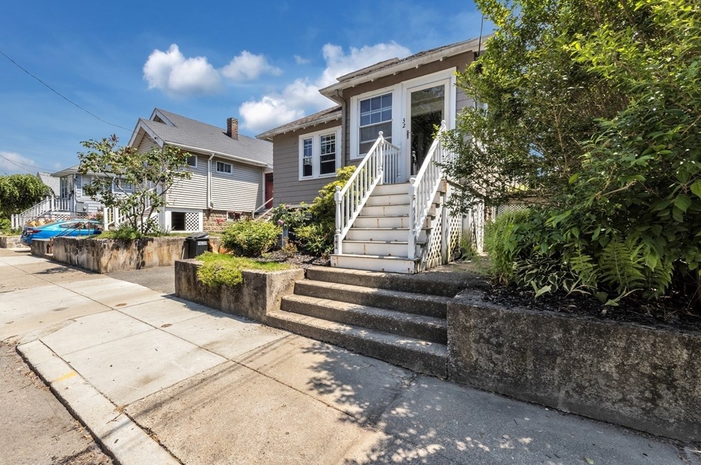 A single-family one-story bungalow at 32 Cotuit Street, Boston, MA.