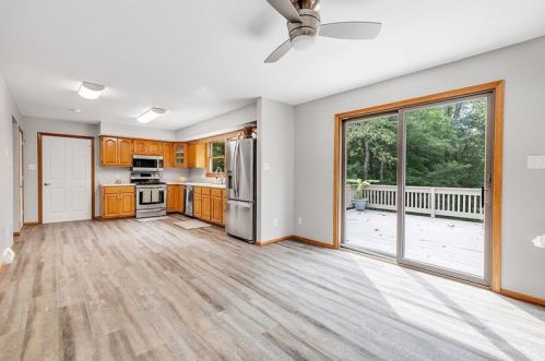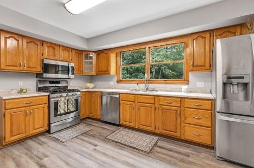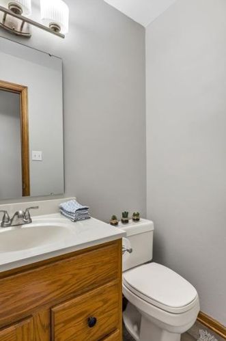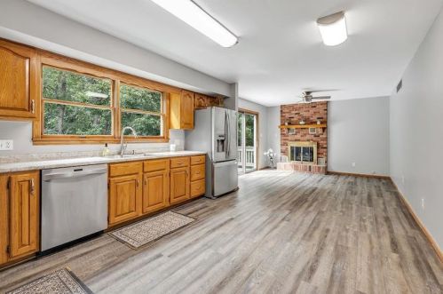 Originally built in the eighties, the lot has a wood facade, asphalt shingle roof and full basement on about a half of acre lot.