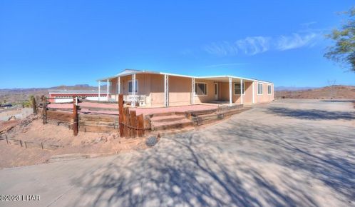 The environmentally friendly one ranch is placed at the end of the street at 37485 Bay View Drive, Parker, AZ.