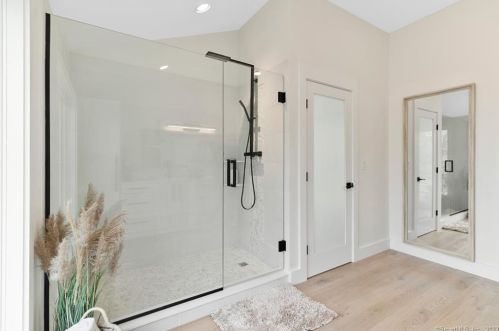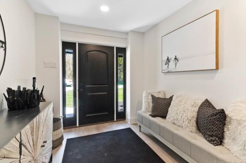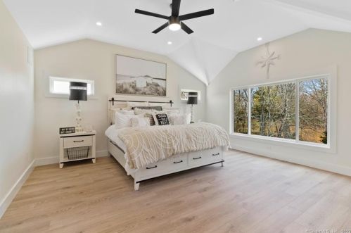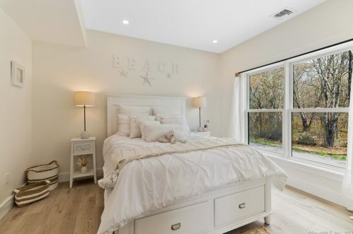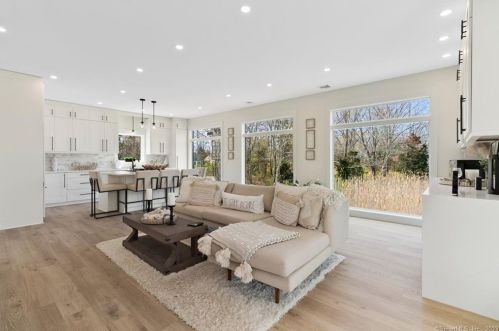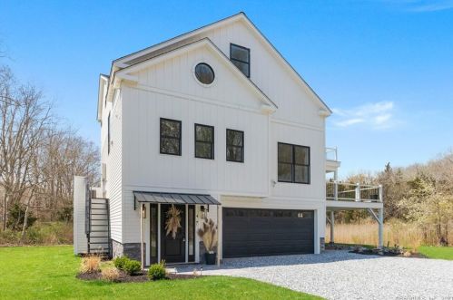 The environmentally friendly one single-family bungalow is placed at the end of the street at 4 Joel Road, Lyme, CT.