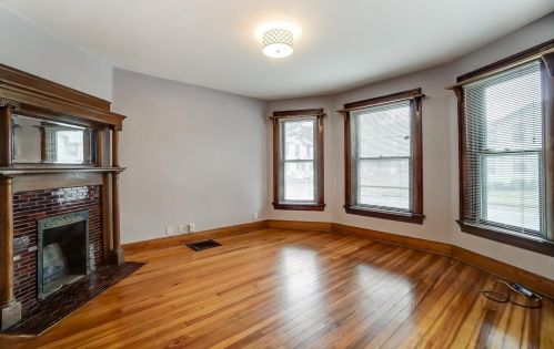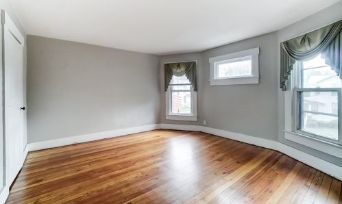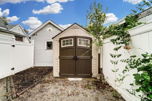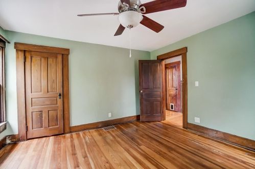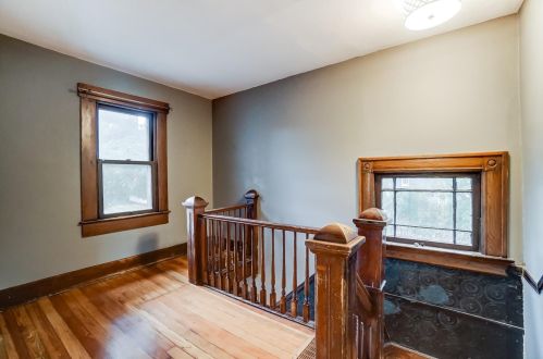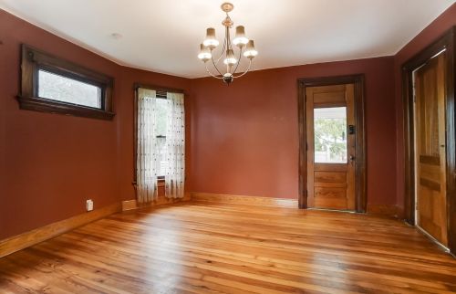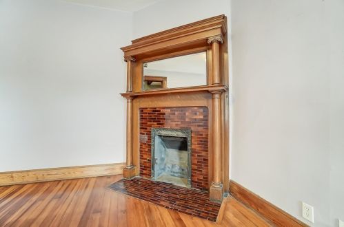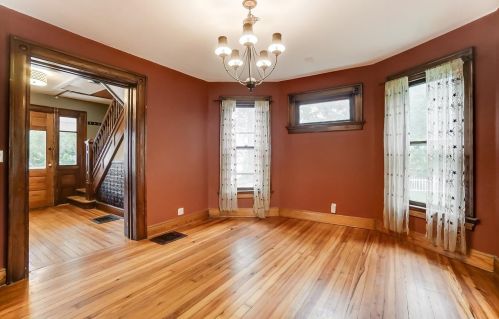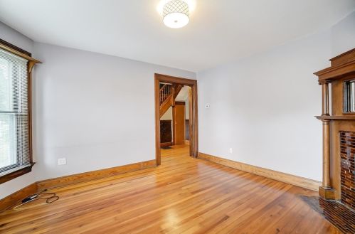 The property has a wood facade, on street parking, composite roof, full basement on near a fourth of acre lot.