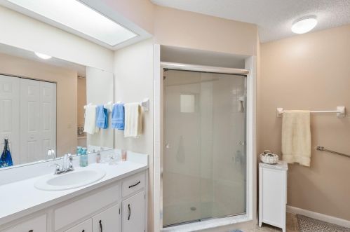 Erected in the eighties, the property has a stucco facade and garage on 0,19 acres lot.