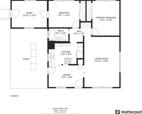 Exterior balcony, unenclosed porch