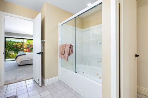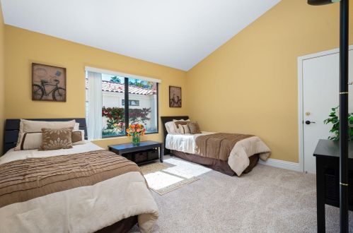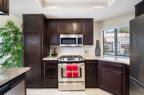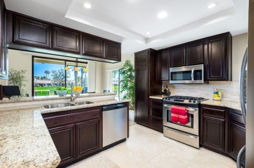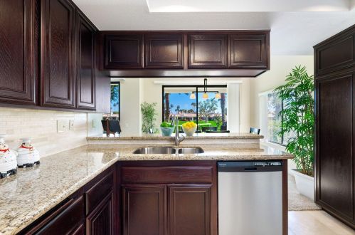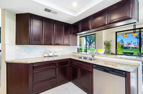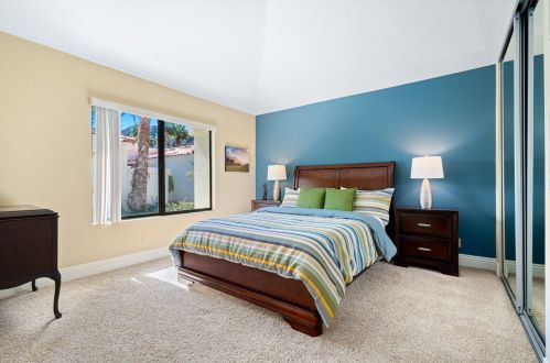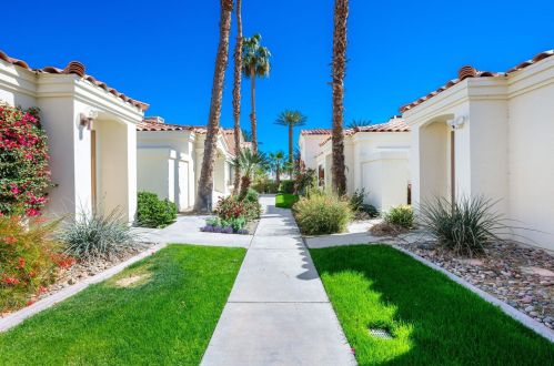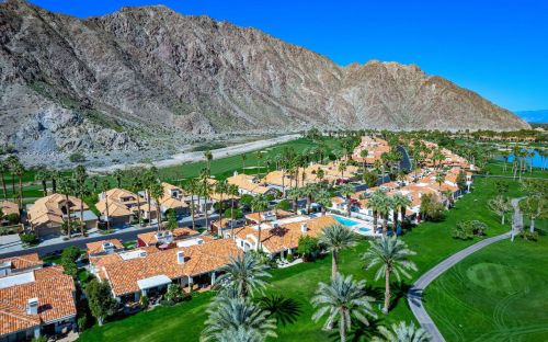 The condominium stands down the street at 55020 Riviera, La Quinta, California.
