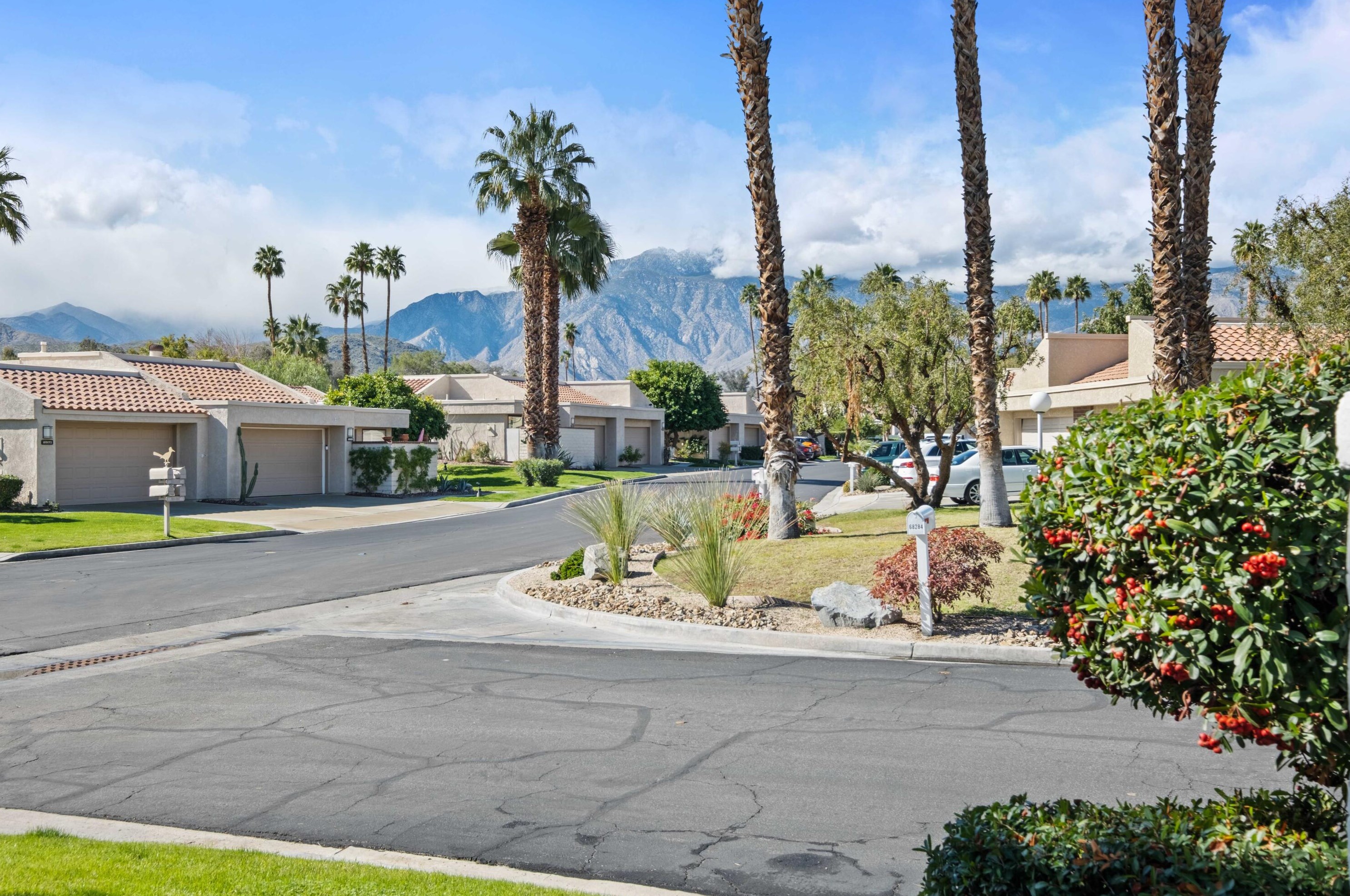 The condominium is situated at 68299 Calle Leon, Cathedral City, CA.