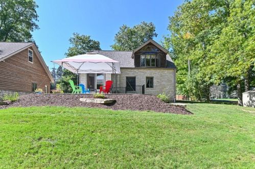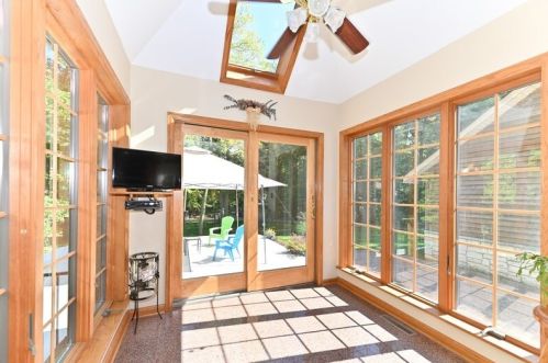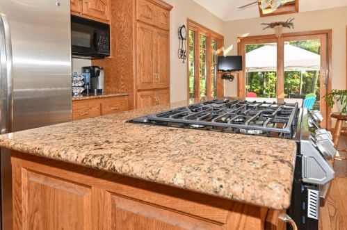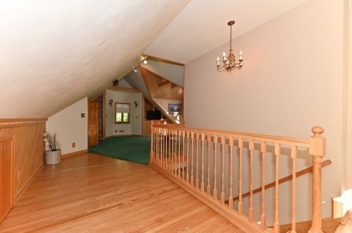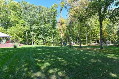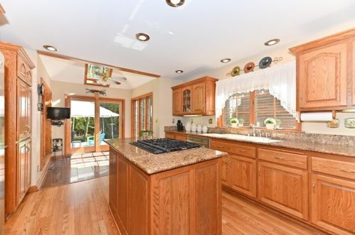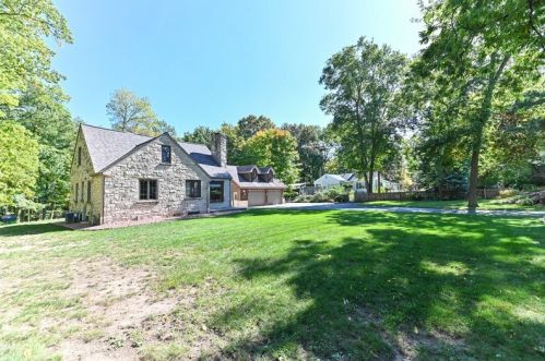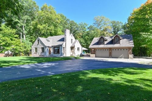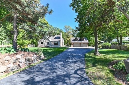 The property has a stone facade, detached garage and full basement on approximately one and a fourth acres lot.