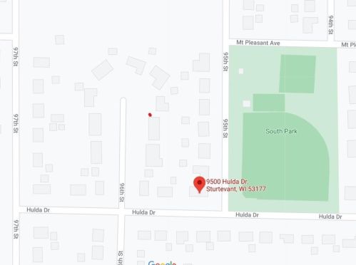 The single-family property is situated at 9500 Hulda Drive, Sturtevant, WI.