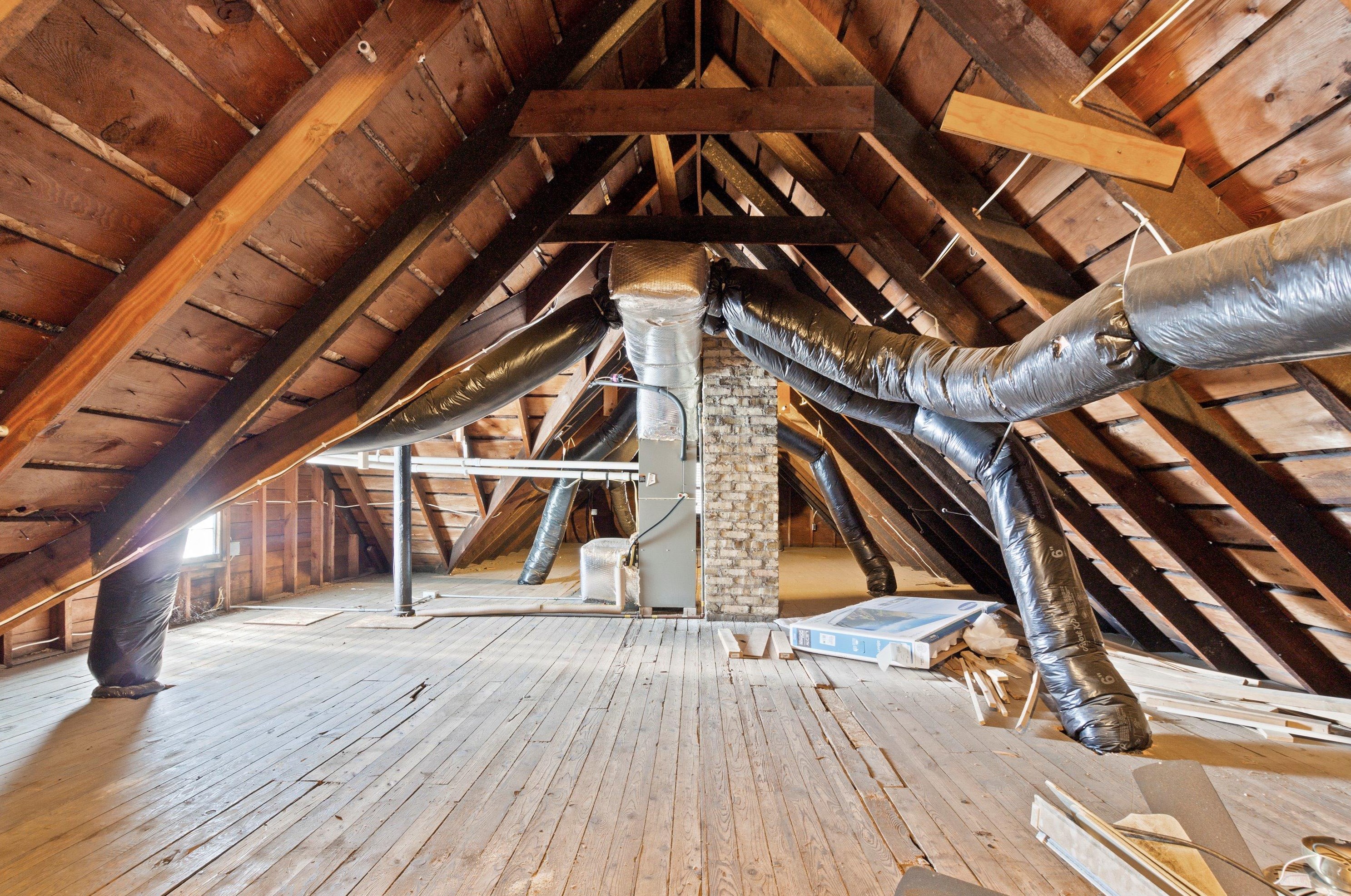 Attic: vacant, crawl space above top story, cupola